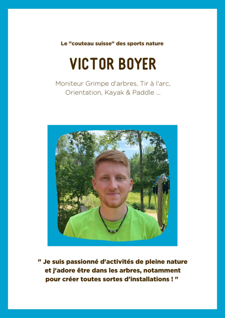 Création d’une entreprise individuelle (Victor BOYER), animation d’événements à domicile et constructions dans les arbres.